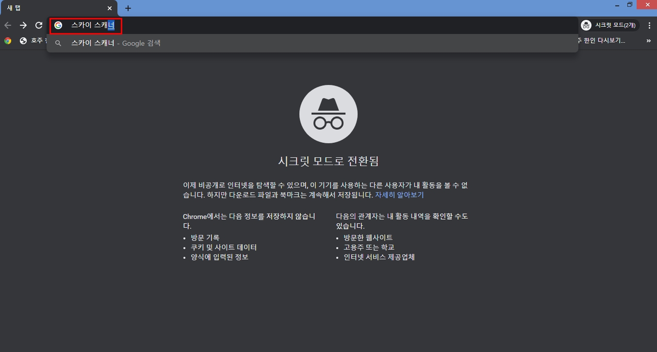 마찬가지로 상단 우측에 점3개를 크릭해서 시크릿 모드로 전환을 합니다
