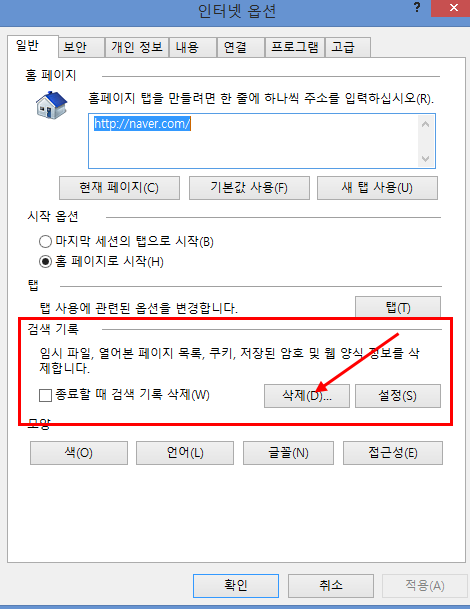 마지막으로 인터넷 사용기록 삭제를 누르면 마무으리~~~