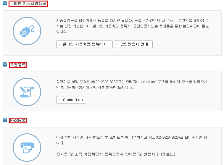 3가지 방법으로 신청이 가능한데요 온라인&우편&팩스 입니다.
